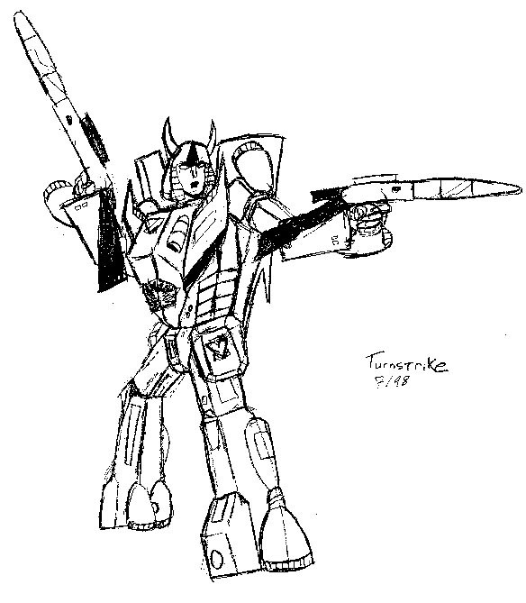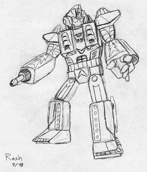 5. Turnstrike - (BW pencil sketch) This young, dashing Decepticon Lieutenant naively volunteers to join in Rash's mission, and later succeeds him as commanding officer in "Decepticons, Attack!" (79k, 8-1-00)