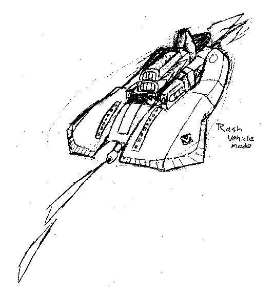 3. Rash's Jet Mode - (pencil sketch) This Decepticon leader transforms into an anti-armor ground assualt jet. (58k, 8-1-00)