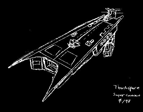 8. Thrashspace's Super Cannon Mode - (inverted pencil sketch) When his restraining bolts are fired in a lightning storm, Thrashspace regains the ability to turn into this gigantic starship. (38k, 8-1-00)