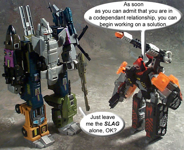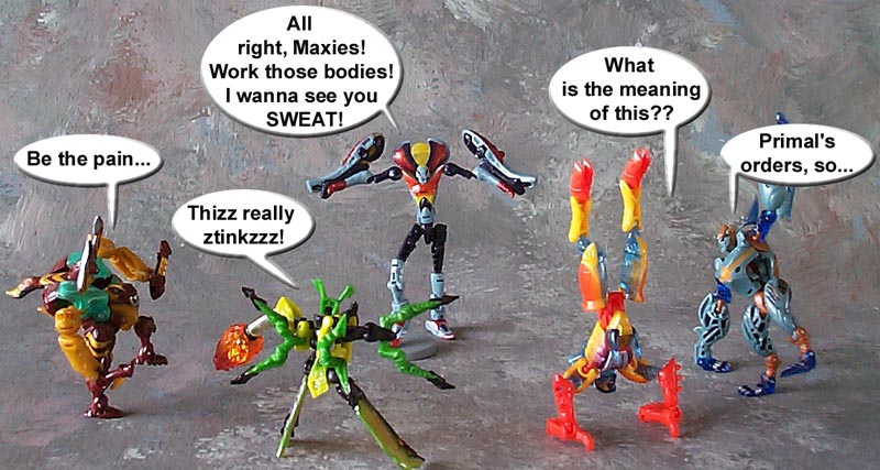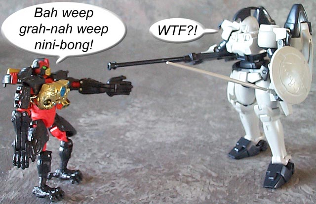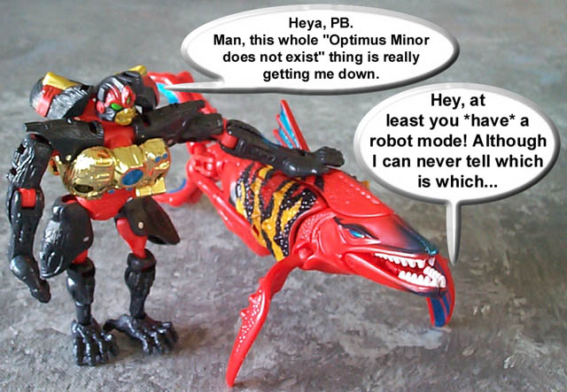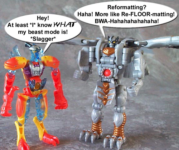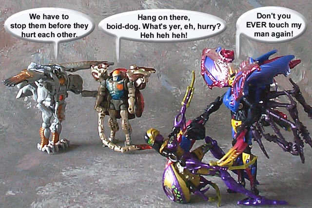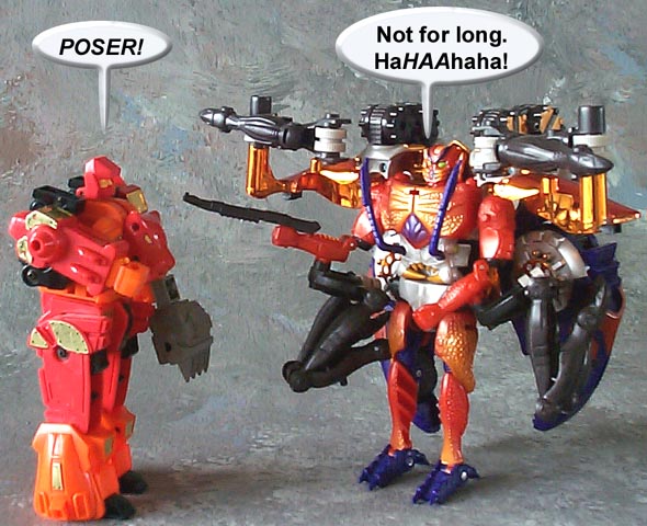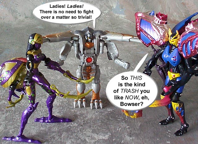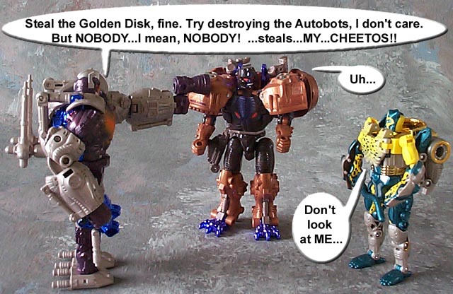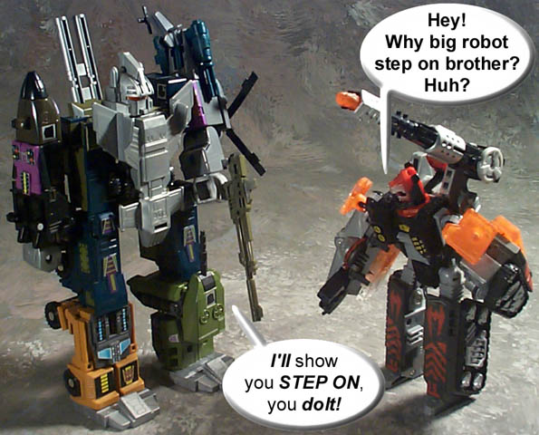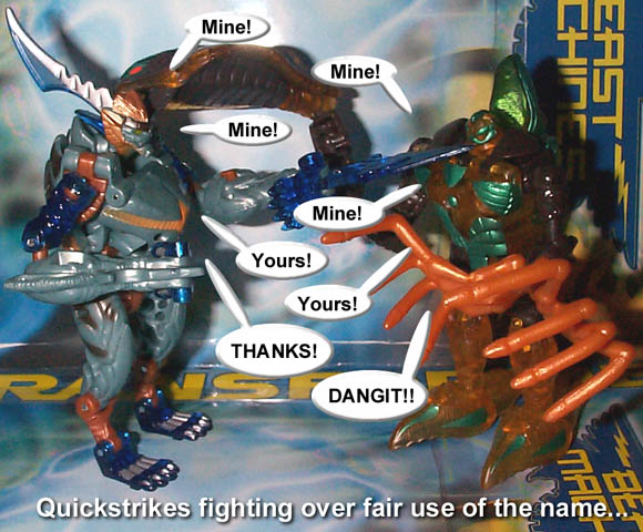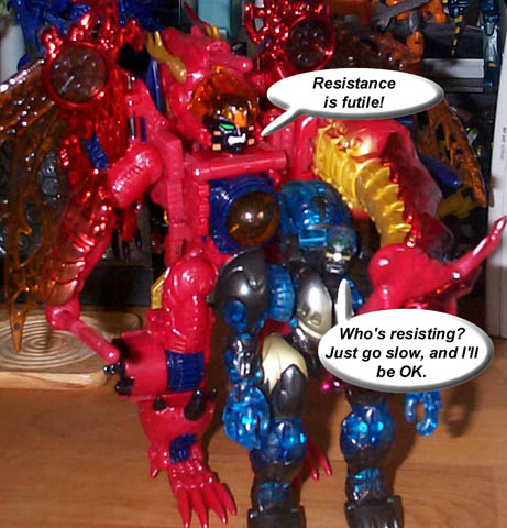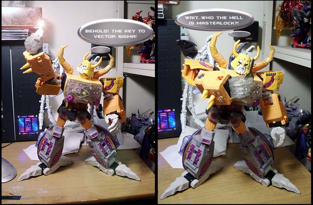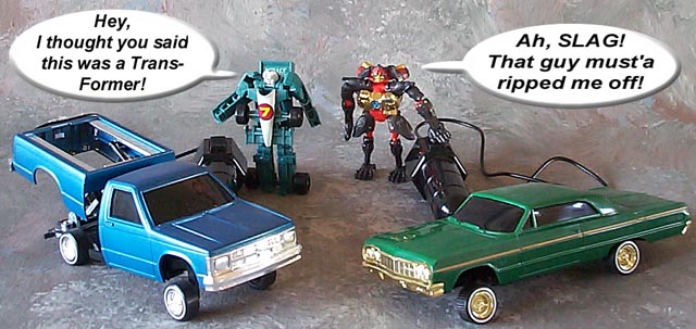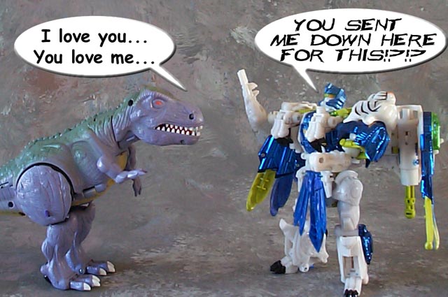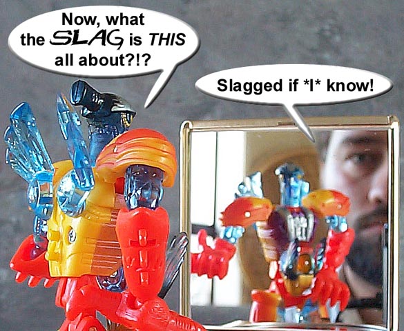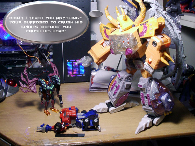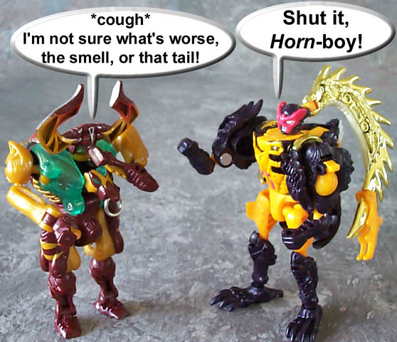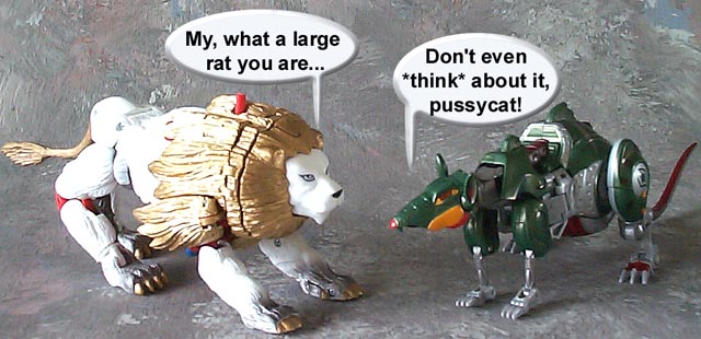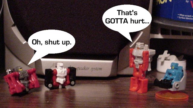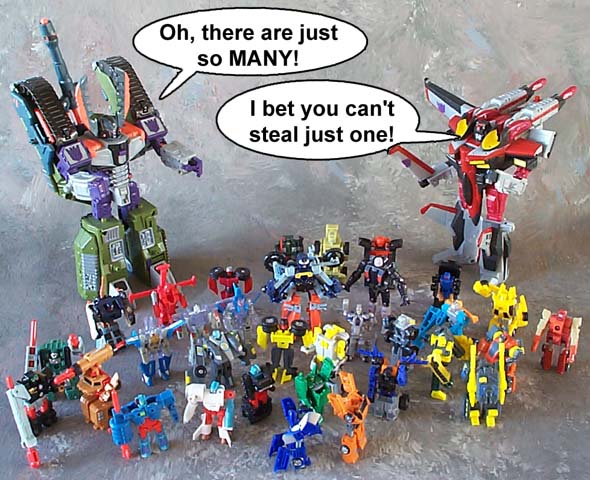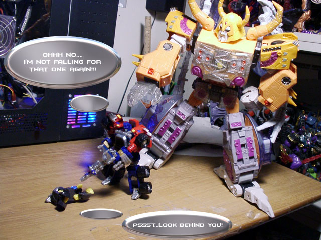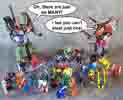 Some humorous images I have made. Mostly digital pictures with humorous, and sometimes tasteless captions or speech bubbles. Simply click the thumbnail image to see the full sized (readable) version. Some of the funnies have been noted as "by" another person. This means that the person provided or suggested part or all of the dialog and/or toys and positioning. Credit is given where it is due.
