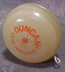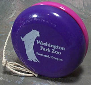 * - "Poof" Yo-yo - a cheap plastic yoyo encased in a foam shape of an explosion... I think... Also says "Poof" on each side. Plays horribly, and even when you get it to work, it has too much resistance and not enough inertia to keep spinning. Nice in a collection, though. ;-)