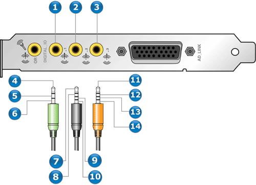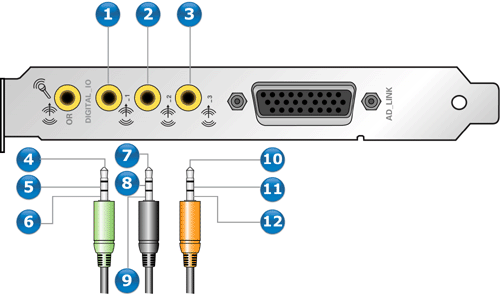 Darstellung Stereobuchse und vierpolige Buchse: Sound Blaster X-Fi-Serie – Erste Schritte