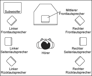 Empfohlene Lautsprecherpositionen für eine 7.1-Lautsprecherkonfiguration.