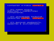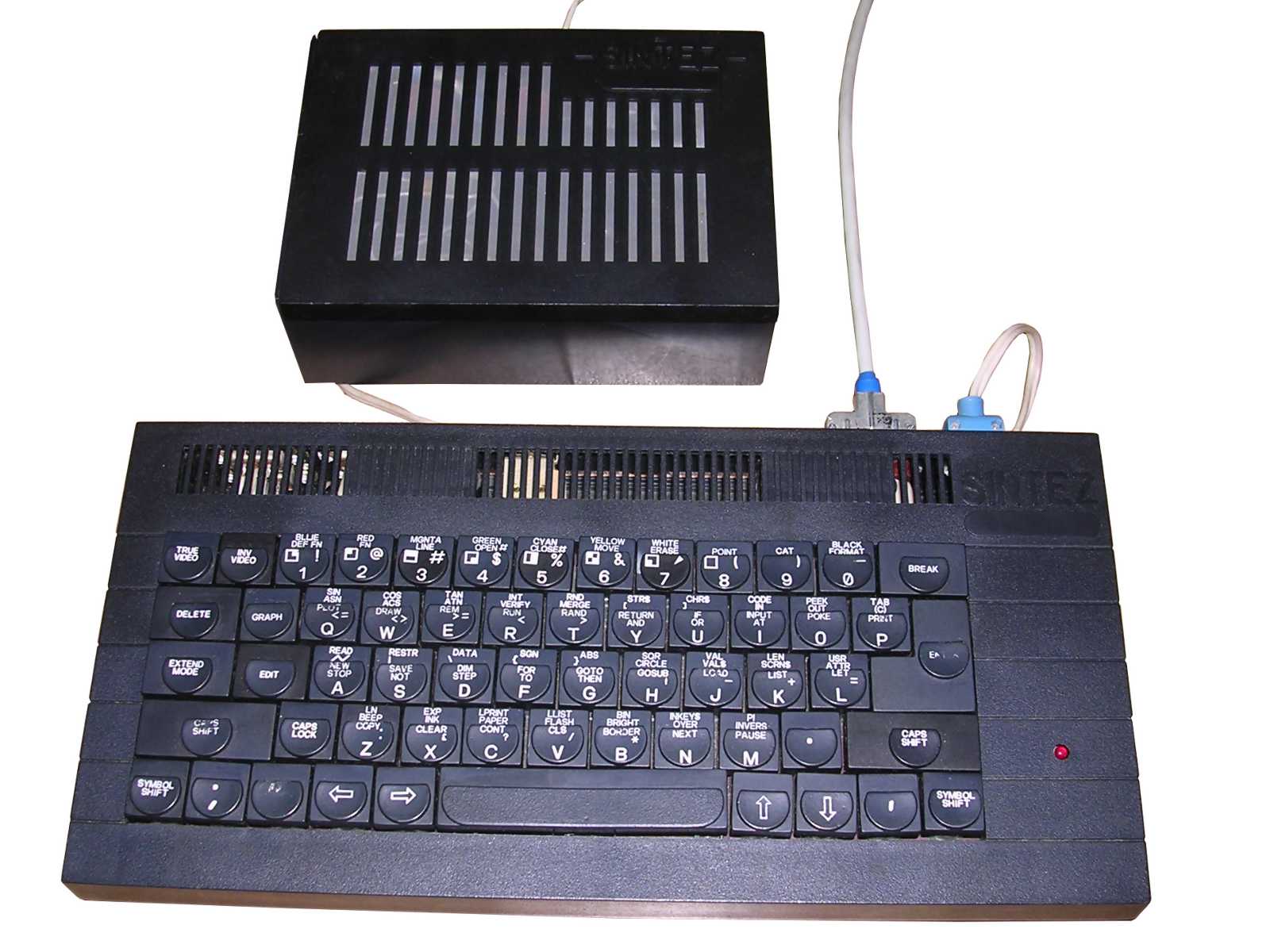 A Soviet/Moldovan ZX Spectrum clone sold as gaming console in early 1990s. The first version of Sintez was made as modification of a well-tested ZX clone design sometimes called "Leningrad" as some popular Soviet ZX Clones were made under this name, yet other clones used this design too and the mainboards were sometimes built in homemade housings. However, not many first Sintez machines have been made by Signal plant in Cisinau. The next one, Sintez M, was re-designed to use available components and reduce number of chips. Sintez M was modified by "Interkomplex" in Moscow in late 1980s. If you got one of these, prepare TTL probe as it may suffer different IC faults.