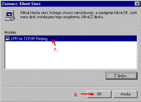 9. After you confirm an INI file, you should see "LPR for TCP/IP Printing" client. Confirm it by clicking OK, and OK, and  OK...