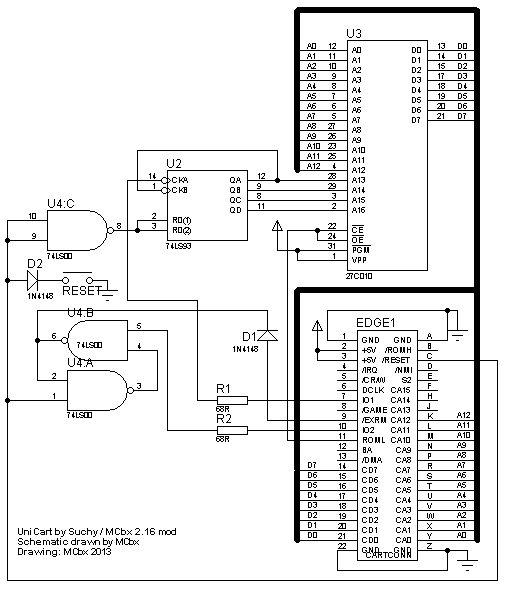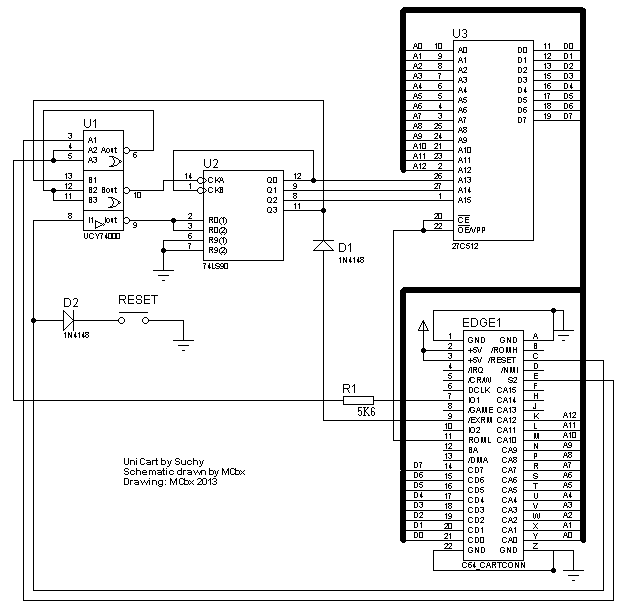 UCart was a cartridge designed for arcade implementations of C64 used in Poland (in one place). This cartridge has 27512 EPROM to store one game and runs it as C64 starts. Few years ago UCart came out in C64 forum, its author Suchy, released schematics and ROM dump, then someone reverse-engineered its loader, called Cartridge OS or SysOp here. This system, written by author, had to occupy a whole one 8K bank of EPROM. Wegi described schematic and principle of operation, then re-written OS: this one was better, but it still launched 1 program only. How to put more PRGs on cartridge?