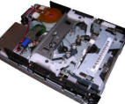 Another unit, inside (notice green head cleaning part near head drum), tape loaded, external unit (drive door missing)