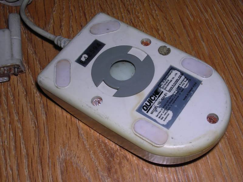 | Information: Origins of this mouse starts in early 1980s, when Microsoft designed serial port mice for Xerox. In 1985 they made a PC version, but there is a confusion about its versions. Although it has the old shape similar to ones made for Xerox and later PC, this one must be a bit newer as it has a converter to connect it to 9-pin serial port, and these ports were not massively present in older (first half of 1980s) PCs. Its sliding part is round which makes it move well in all directions, but unfortunately it makes its bottom dirty very quickly - it needs cleaning more frequently. |