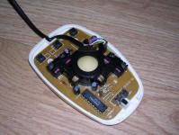 buttons and in PCB there is place for 3rd. Optical transceivers are just mounted on PCB, this is standard in all modern mice but these times was only in cheap ones as there is a bigger risk of dust contamination. I got this mouse with broken wire in cable, so I replaced the cable. What is interesting it still works and the soldering on PCB is surprisingly good in quality. |