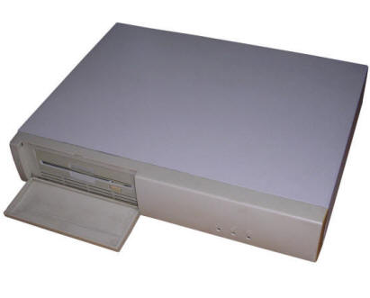 I bought my unit in a flea market. It had no floppy disk drive, but its cut-out in front panel was enlarged to fit a full-profile one, not a low-profile as was by default. I replaced it with low-profile floppy disk drive and cut a new front bezel for it.