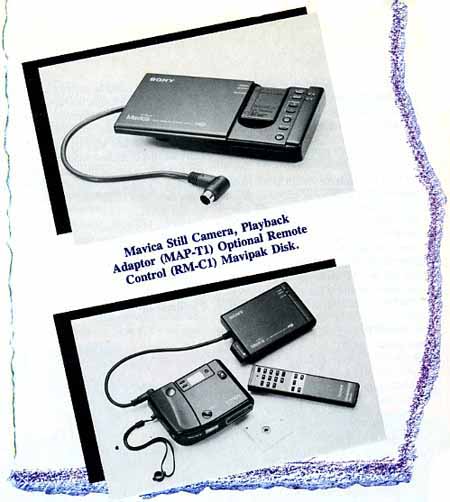 Canon, Sony and Olympus were showing actual production models.All still-video cameras use a 2-inch floppy disk that stores 50 frames or images. Each image is stored as digital data and can be retrieved instantly. Some companies like Canon use the camera itself to play back the images through a television whereas Sony and Olympus require separate players to view the image.