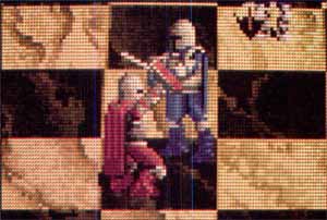 Actual digitized sound effects, such as clanking armor, accompany the animations. When an attack occurs, the animations depict a battle between the two pieces, and although each confrontation has a predetermined outcome, the fight is enjoyable to watch while plotting another move. Most battles are not without humor. When a pawn attacks another pawn, he lances his opponent in the foot; the crippled pawn then hops up and down on his good leg until the final death blow is struck. Then the conquered piece dissolves pixel by pixel and vanishes.