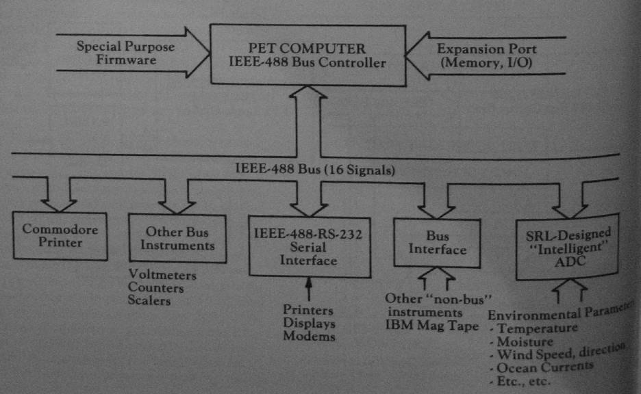The versatility of the PET computer/GPIB controller makes it a cost-effective solution to many SRL instrumentation problems (Figure 3). Although our problems encompass a variety of widely different requirements and constraints, one (and sometimes all three) of the PET interface ports can be used to connect the PET to real-time I/O peripheral devices.