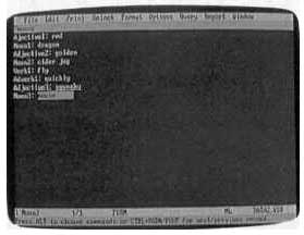 If you use Microsoft Works, for example, select the ADJECTIVE1 in the word processing file and choose Insert Field from the Edit menu. Click on the name of the associated database, and you'll see a list of the fields. Click on the ADJECTIVE1 field and a placeholder named ADJECTIVE1 replaces the word ADJECTIVE1 in the word processing file.