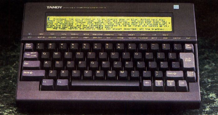 The jet-black WP-2 retails for $349.95, and it has an 80-character × 8-line LCD screen. Built-in software includes a word processor, a 100,000-word spelling checker, a 200,000-word thesaurus, and a calendar.