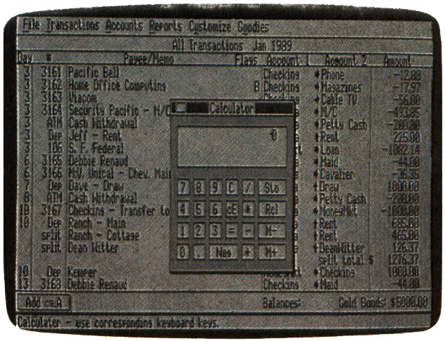 Navigational shortcuts will assist you in moving through the program. Pressing the Escape key, for example, takes you back one screen (keep pressing and you'll eventually return to the main menu); pressing the Alt-H key combination brings up a help screen; and pressing Control-O verifies the information you have entered. Also, the function keys are assigned to some of the most frequently used commands, such as Accounts Menu (F4) and Calculator (F8). The program's manual is personable and encouraging. The text is easy to understand, and there are plenty of examples and warnings to keep you on the right track.