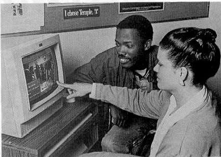 Developed by an IBM scientist and researchers at Temple University in Philadelphia, the system uses an IBM personal computer, a videodisc, a voice synthesizer, and an IBM InfoWindow touchscreen monitor to display text and video onscreen