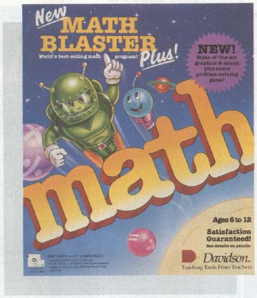 New Math Blaster Plus IBM PC and compatibles; 512K; DOS 2.1 or higher; CGA, EGA, MCGA, VGA, Hercules, or Tandy (requires 640K) graphics; hard disk installable; includes both 5¼ and 3½-inch disks; supports Ad Lib and Sound Blaster music cards—$49.95 DAVIDSON & ASSOCIATES |