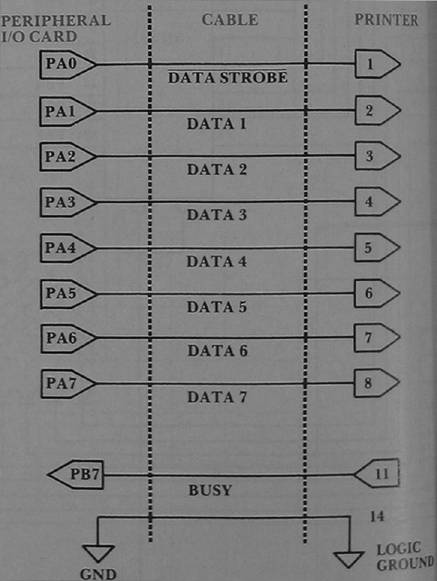 Figure 2. Interface between the peripheral I/O circuit and the printer.