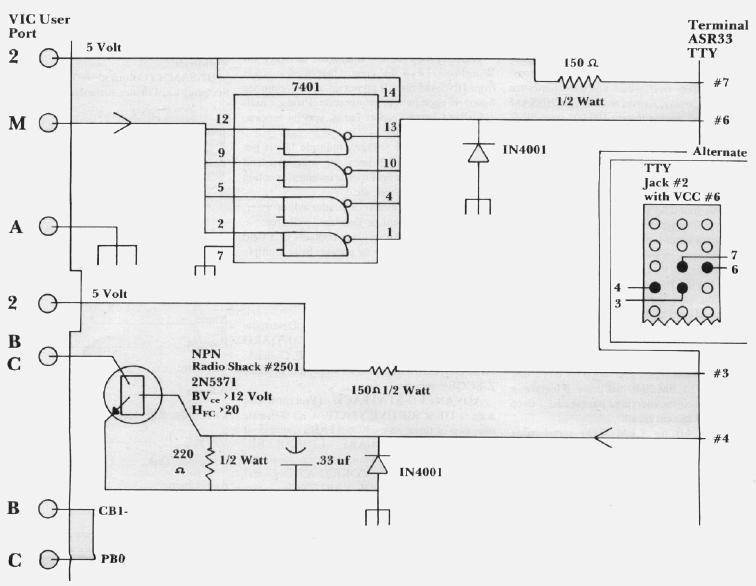 [In reference to] Mr. R. O. Danver's request [COMPUTE! April, 1982, #23, pg. 14] for VIC-TTY interface, here are the hardware and software required to [connect] an ASR-33 TTY to a VIC: the attached interface will allow the VIC-20 to interface an ASR-33 Teletype with a two way communication capability.