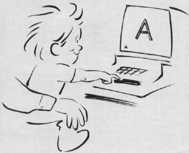These sessions are not very long – three to five minutes, at most. Jesse is usually a little impatient as the program loads from tape. Just about the time it's ready, he's decided he wants to play another favorite game (another excuse for getting a disk drive).