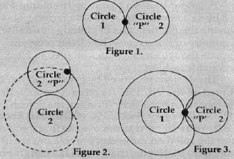 Refer to figures 1 through 3. As circle 2 is rolled around the circumference of stationary circle 1 (Figures 1 and 2), the fixed point "P" on circle 2 begins to ???rotate and produce the heart-shaped cardioid curve. Figure 3 represents one complete revolution around fixed circle 1 and displays the completed, closed cardioid curve.