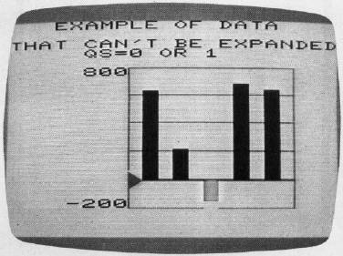 If you were the chairman of a charity sale and this was a graph of yearly results, you'd probably use Figure 4 when talking to your committee because it's easy to see the changes. But you might use Figure 3 in the final report because it doesn't exaggerate the bad news for '83. In Figure 4, the bar for '83 is only 50 percent as high as '82, but Figure 3 shows the true proportion – 93 percent. An offset scale isn't always possible, as, for example, when the list includes both positive and negative numbers. In such cases, QS = 1 will not have any special effect on the graph. Figure 5 is a graph of such data.