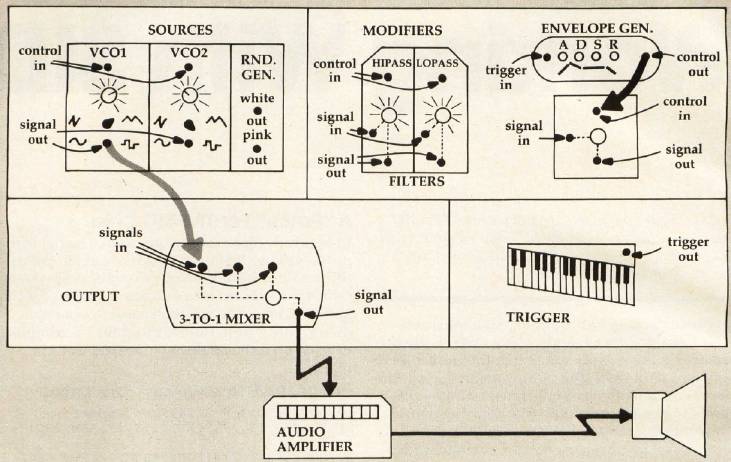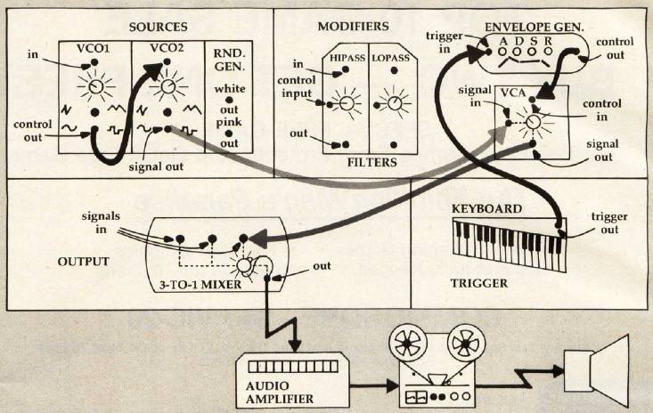 If you've decided you want to make music on your Commodore 64, and you've read all the literature on the subject and still don't know where to begin, perhaps a look at how an analog synthesizer is used in an electronic music studio will clarify many aspects of the 64's amazing sound capabilities. Once we have covered the physical aspects of a synthesizer, we can begin to understand some of the techniques used to create sounds artificially.