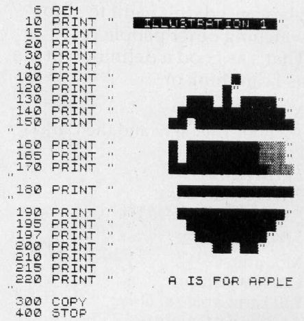 Here is the program that was used to print the apple picture to the TV screen. We can make a copy of the program (listing) by typing LIST (Shift G).