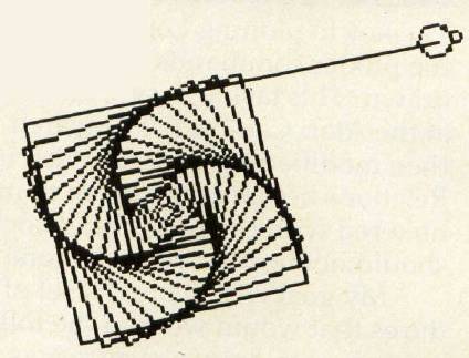 This procedure examines the pen position of the turtle along with the turtle location, and sends the plotter pen scurrying to its corresponding position. In order to take maximum advantage of the plotter paper width, I rotated the plot by 90 degrees so that as the screen image moves from left to right, the plotted image moves from top to bottom. This gives a very nice-sized image, even though the plotter paper is only 4.5 inches wide.
