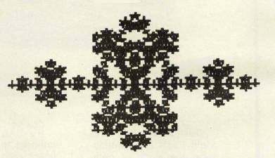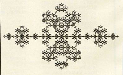 TO SETUP PU SETPOS [-150 0] PLOT SETH 90 PD HT END TO SN :S :L IF :S < :L [F :S STOP] SN :S / 3 :L LT 60 SN :S / 3 :L RT 120 SN :S / 3 :L RT 120 SN :S / 3 :L LT 120 SN :S / 3 :L LT 120 SN :S / 3 :L RT 60 SN :S / 3 :L END