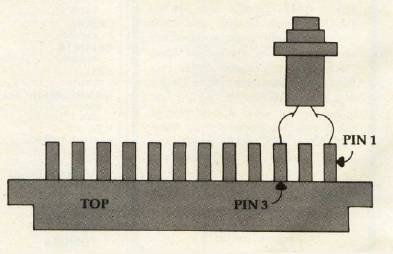 When construction is finished, plug the connector onto the 64 User Port (with the computer's power off), making sure that the terminals with connected wires are on top. With your switch in place, if your program crashes you just press the switch, and your 64 is RESET.