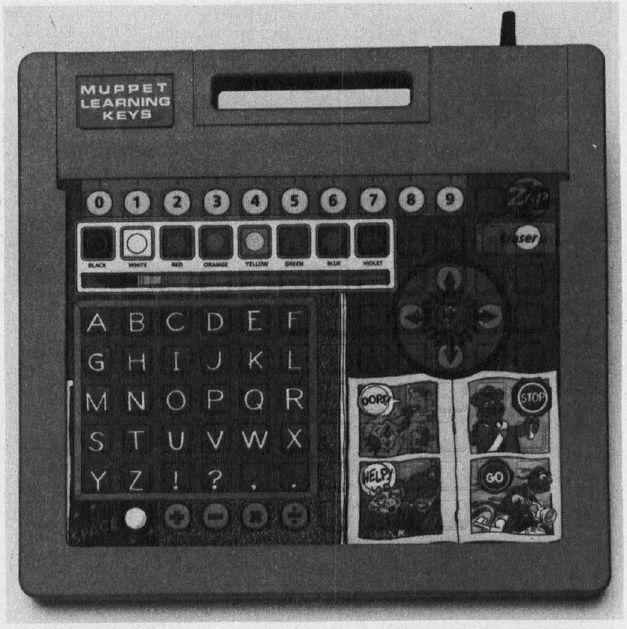 Muppet Learning Keys (Koala Technologies)—A computer peripheral for the Apple IIe, IIc, and the Commodore 64, Muppet Learning Keys is a computer keyboard which simulates the familiar contents of a child's school desk to help youngsters learn basic skills.