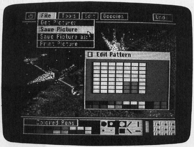 • Medium-resolution graphics of 320 X 200 pixels (screen dots), and hi-res graphics of 640 X 200 pixels, with a total of 4096 colors. (That's not a typo. We saw a dramatic rainbow demo which supposedly displayed all 4096 colors on the screen simultaneously, though we didn't have time to count them.)