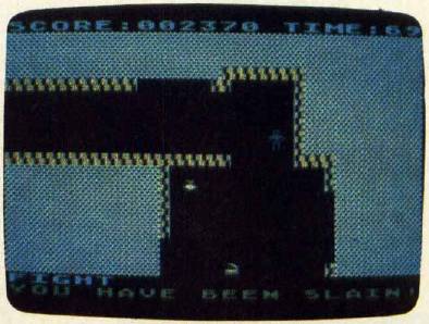 There are eight levels to the Apshai labyrinth, and on each level you can choose any one of 16 different dungeons. To complete the game, you must explore one dungeon on each level; once you've mastered one set of dungeons, you can select a different set to make later games as exciting as the first. A little figuring reveals that there are 128 different dungeons, each with a unique floor plan. With roughly 60 rooms per dungeon, that gives you more than 7500 different rooms to explore. You won't get tired of this game in a weekend.