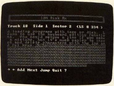 Some disk operating systems (for example, Commodore and Atari) store the linkage information within the data sectors themselves. It's therefore easy to reconstruct deleted files on these disks since each sector points to the next sector in the linked chain of files. But since PC-DOS stores the linkage information in a map which is altered when the file is deleted, you have to link sectors back together the hard way. If the disk hasn't been used much, you might be lucky enough to find all or most of the sectors contiguous and consecutive. Otherwise, you must examine each sector, one by one, and restore the proper order yourself. Fortunately, Disk Rx has a few features to make the job possible.