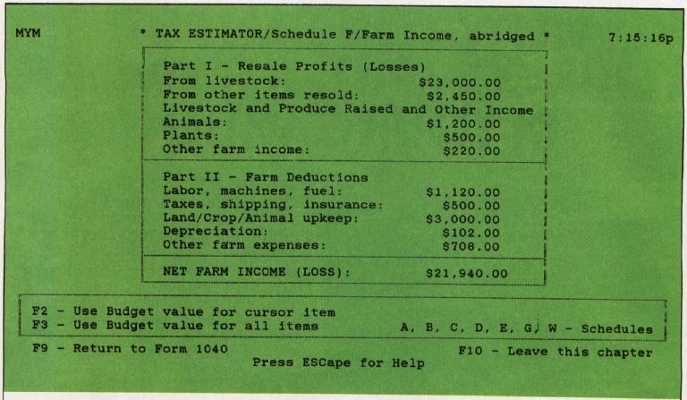 Income tax software cannot prevent the annual tax preparation marathon if you haven't kept good records throughout the year. Many personal finance software packages offer ongoing accounting, making it much simpler to gather the necessary information when it's tax time. Managing Your Money, designed by financial expert Andrew Tobias for the Micro Education Corporation of America, has that capability. You can either estimate your annual income and deductions, or pull up actual figures from elsewhere in the program. The program suggests different tax strategies to try—like filing singly instead of jointly—and can figure and refigure your taxes in seconds. It also prints out much of the documentation you'll need to submit to the IRS.
