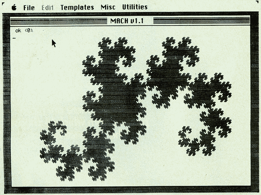 I enjoyed reading Paul Carison's article on fractal graphics for the IBM PC/PCjr (COMPUTE!, March 1986). His explanations were very clear. But it must have been a real trial for him to develop the BASIC version of the "Eight Thousand Dragons" program. We would like to show the beauty of fractals when written with a language that supports recursion. Here is an example of Forth code that does the same thing. It's written for Mach1, our Forth compiler for the Apple Macintosh and Atari ST. The execution time for a fourteenth-degree dragon is only three minutes.