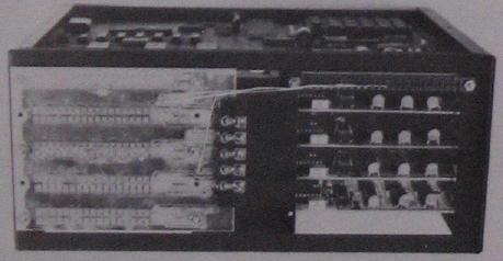 Another approach that has been slowly gaining acceptance is to place the expansion boards underneath and parallel to the computer board. Thus the expansion motherboard, which ties all of the boards together, is vertical. In order to hold this assembly of boards together, an aluminum frame with card guides is typically supplied and the motherboard is attached to an opening in the frame. Figures 1 and 2 show the KIM and AIM versions respectively of Micro Technology's implementation of this concept.