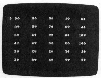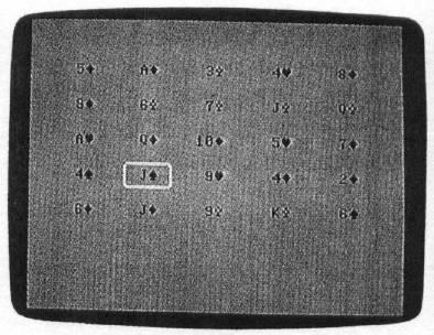 Program 6, for Atari eight-bit computers, uses the cursor keys (either alone or in combination with the CTRL key) to move the cursor. Press RETURN to select a card. Press Q at any time to start a new game.