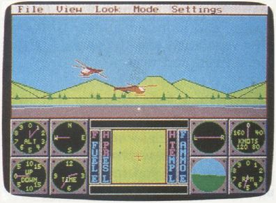 There is also more to be desired in the way of graphics. As noted above, the scenery is impressive, the control panel is well done and easy to read, but the aircraft graphics are disappointing. By switching views, you can watch yourself fly from Ground, Tracking, or Satellite viewpoints, but there really seems little point in doing this. All you will see is a box with what might be an attached rotor.