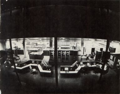 A LOOK INTO THE MAIN COMPUTER ROOM AT WALT DISNEY WORLD EPCOT CENTER.