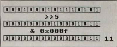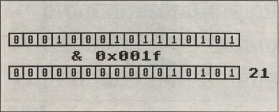 We first create a mask we can AND with our integer—a mask that will ensure that bits 5 through 15 in our result will be clear, while at the same time maintaining the values of the lower five bits. The proper mask is 0000000000011111 in binary or 0x00If in hexadecimal. (Note that it's much easier to create your mask in binary first then convert it to hexadecimal. That way you can easily see which bits you're setting.) Then all we have to do is AND the system date with our mask. In Listing 1, the line that accomplishes this feat looks like this: