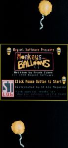 When the Clowns and Balloons ST project was recommenced and finished, the name just didn't suit it anymore. The graphics were completely different, the game play more difficult, the music was rewritten and some of the animation was modified. So, the name was changed. Here, then, is Monkeys and Balloons.