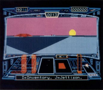 During play, an alien desert is seen through the cockpit viewer, with the terrain appearing as solid three-dimensional objects on your ST's color monitor. The three-dimensional effect is convincing and shows some ingenious programming.