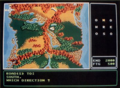 Disk access is acceptable and only occurs when entering and exiting towns. Disk swapping is minimal. You boot with the first disk and replace it with Disk 2 before the actual game begins. Disk 2 holds the data for the first two-thirds of the game and is used for games saves. Only one game can be saved on the disk, but you can make as many copies of the disk as you need. Disk 3 is requested for the final third of the game and will not be swapped unless you save the game or re-enter one of the earlier towns in the game.