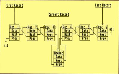 The basic building blocks of constructing a linked list are procedures to add a record, delete a record and insert a record (see REC_MOD.PAS and Figures 2 through 4).