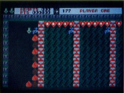 Digging loosens obstacles that could trap Rockford and prevent further movement. If Rockford should find himself in this predicament, the player can elect to press the F10 key and self-destruct, which results in the loss of a life. Obstacles falling on Rockford and contact with the maze baddies yields the same result. If his timing is accurate, Rockford can push obstacles down empty shafts so that they will fall on and destroy his enemies, changing some of them to treasures that can be collected.