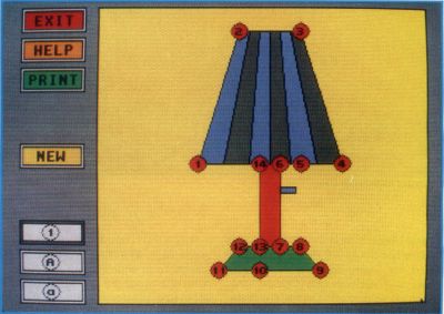 Be sure to SHOW your puzzles before saving them. This often reveals deficiencies in a design that will not be noticed by looking at the design grid. When I prepared the chair puzzle, for example, I omitted one of the rear legs. If I hadn't viewed the picture with the "Lines Only" option, I wouldn't have noticed the error until the chair puzzle was used in a game. I've also found that it is a good idea to draw the extra lines after you are certain you have the dots exactly where you want them. I use two disks when I design. One is a temporary disk on which I save each puzzle with only dots—before I have added any lines. That way, if I'm dissatisfied with the placement of lines, I can always load the dots-only version back into the program and try to place the lines again. Don't be disappointed if your first few attempts look silly; puzzle creation taxes one's thinking, and a bit of practice will help tremendously. Your child will appreciate your efforts!