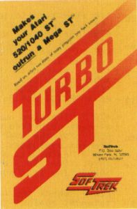 I've always thought that my ST redrew its screen fairly quickly. Oh, sure, you could see it being done (none of that "blink of the eye" stuff), but it was adequate. SofTrek, however, thought differently, and the result was Turbo ST. This program increases the speed of screen redraws by a sizable factor. For example, GFA BASIC is sped up by over 50 %. When you consider that the blitter chip only offers a speed increase of about 20%, Turbo STs performance is impressive.